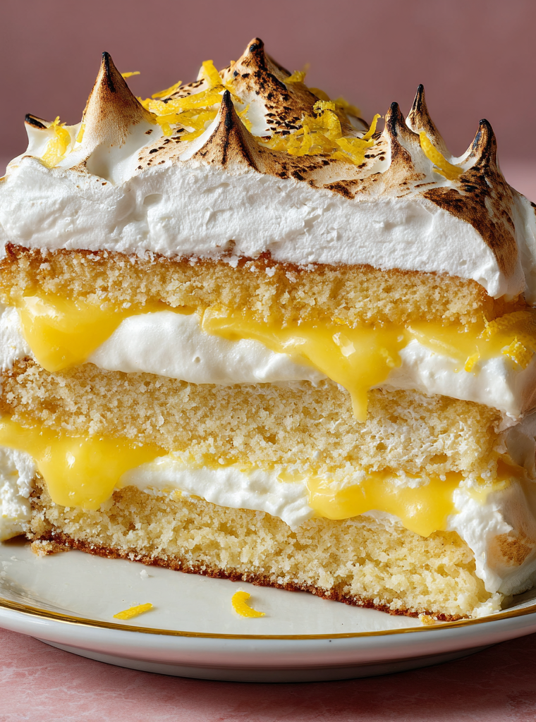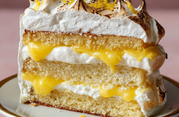 With layers of zesty lemon curd, fluffy meringue, and light, airy cake, this Lemon Meringue Layer Cake is an elegant centerpiece that brings a refreshing twist to any celebration, delighting the senses with its bright flavor and creamy texture.