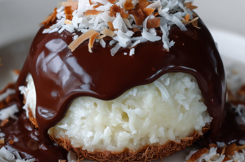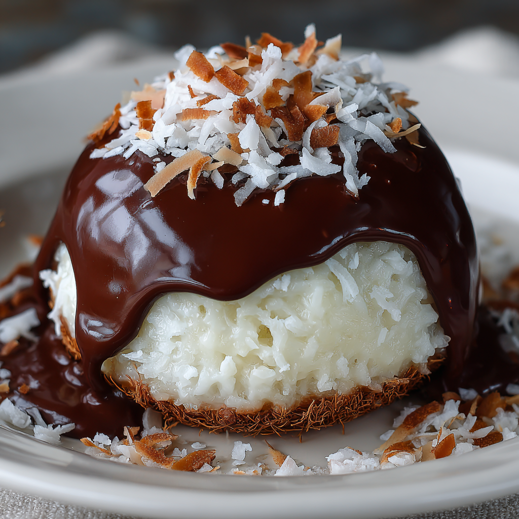 Delightful Coconut Dome Drenched in Chocolate