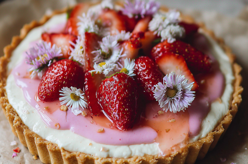 Strawberries provide vibrant color, freshness, and natural sweetness, making them the perfect topping for this tart.