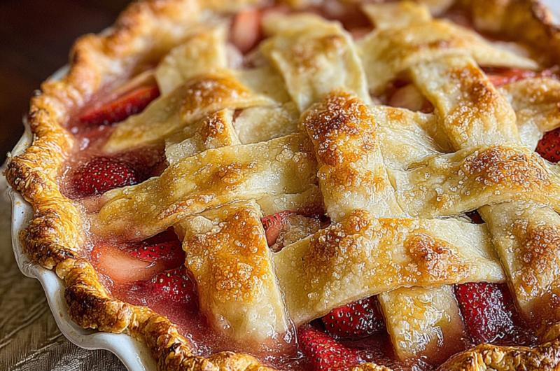 Rhubarb provides the distinct tangy flavor that contrasts beautifully with the sweetness of strawberries. It also gives the pie a lovely tartness that keeps each bite interesting.