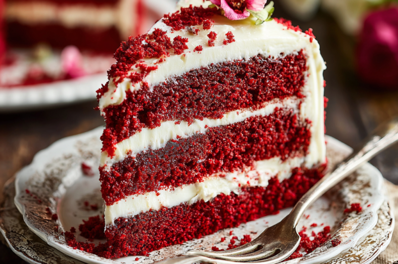 Originating in the early 20th century, red velvet cake has evolved from a simple layer cake into a beloved staple, often seen at weddings and birthdays. The recipe is a beautiful balance of buttermilk tang, cocoa subtlety, and a touch of vanilla, all wrapped in cream cheese frosting that complements the cake's richness perfectly.