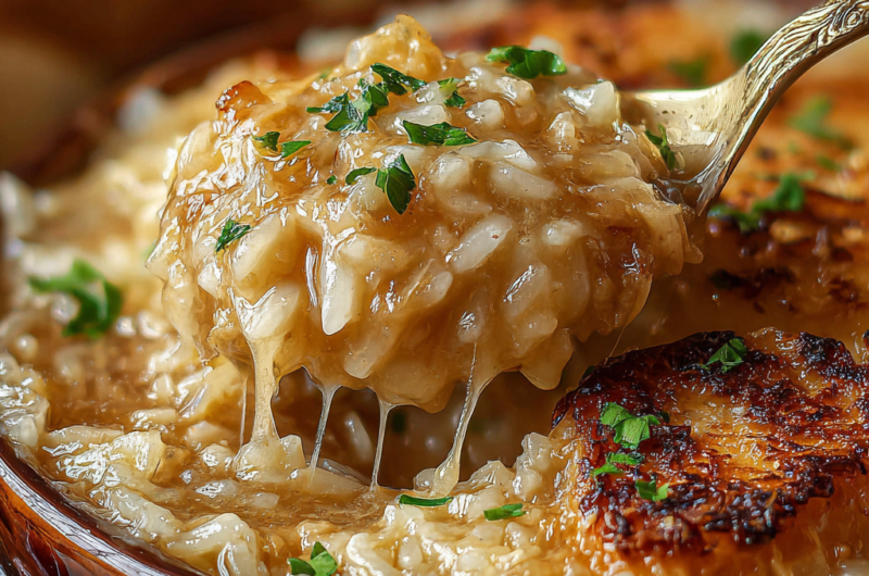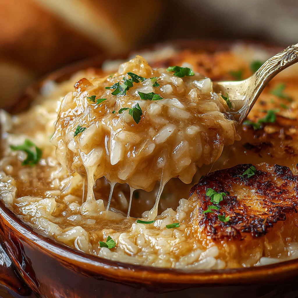 Richly flavored and deeply comforting, Chicken French Onion Soup Rice combines tender chicken, savory caramelized onions, and creamy rice for a satisfying dish that's ideal for cozy gatherings and cold evenings.